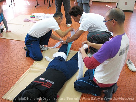 基礎講習修了者からのステップアップ、包帯や急病等の応急手当の復習、水上安全法指導員養成講習の受講のため、などに是非いかがでしょうか。